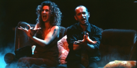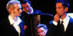 Director Andrew Wale and musical director Perrin Manzer Allen were looking for a choreographer to remount Anonymous Society, their musical project on the works of Belgian singer Jacques Brel and invited dancer/choreographer Sidi Larbi Cherkaoui. The ‘new’ Anonymous Society, guided by Cherkaoui’s daring theatrical choreography, premiered in Ostend, during the festival Theater aan Zee. It went on to the Edinburgh festival where it became a huge hit. The production won several awards including the Fringe First Award and the Total Theatre Award in Edinburgh, and the Barclay Theatre award in London in 2000. The piece was a surrealistic journey of five men and three women interacting in a living room. The emotional themes in Brel’s music were danced and sung live by the performers. Cherkaoui’s character was like an angel, ghost or echo of the other performers, gluing everyone together with his gestures. His character was an echo of Andrew Wale's, and they literally exchanged roles towards the end. Flemish singer/songwriter Micheline Van Hautem, still performing Brel’s music up until today, was part of the cast and even danced a fiery tango with Cherkaoui.