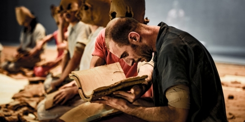 To specially-composed music, performed by musicians and singers from Italy, Japan and South-Korea, the dancers interact with the clay in sophisticated, suggestively ritual patterns. An experience steeped in both mysticism and naturalism.