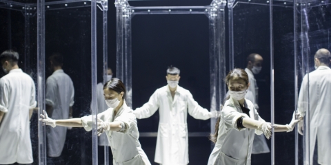 Des personnages en blouse blanche, un masque chirurgical devant la bouche, observent d'autres personnes et leur font subir des tests. Parmi eux sont disposées des cages de verre, telles de gigantesques éprouvettes. Comme l'indique le titre, 生长genesis – la genèse – le sujet du spectacle est l'origine de toutes choses. Nous naissons et nous mourons, et entre les deux nous sommes sans cesse mis à l'épreuve et nous nous éloignons toujours davantage de la nature.
